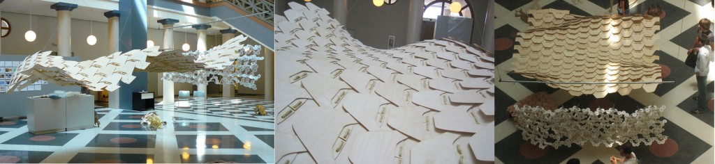 The UH College of Architecture Atrium came alive with large-scale fabrication installations built by students enrolled in my D-FAB 5th year studio. The work explored Material Logic & Component Design, utilizing a variety of materials including laser-cut wood & plastic, and bent steel components. |