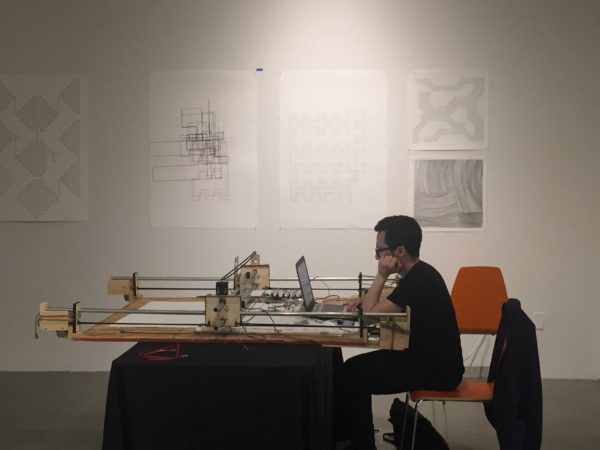 ![]() ![]() ![]() ![]() ![]() New work by me and my MAKING DRAWING[s] seminar students, installed as a group exhibit at the BIG OMAHA Technology Conference, 2017. The installed work included live demos of custom drawing machines, and accompanying MACHINE DRAWINGS. Images above include machines and drawings by S. Perez, and students K. Benaida and C. Preciado. Watch the conference news clip video here. |